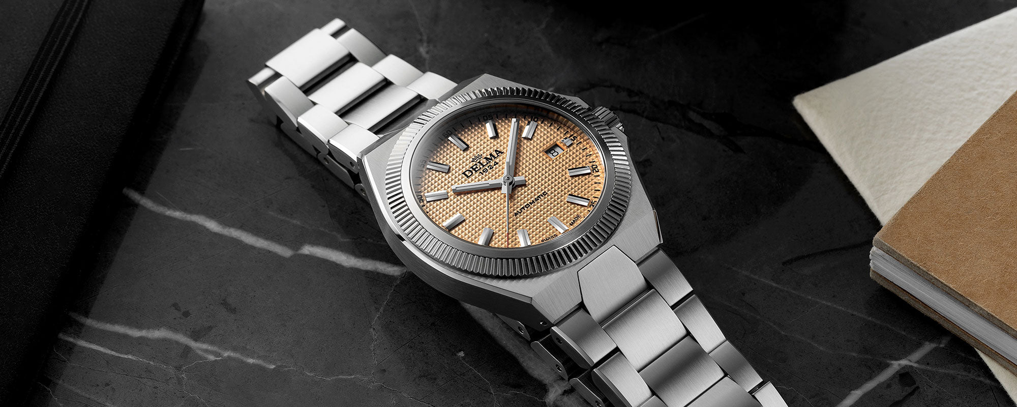With water resistance to 10 atm, the stainless-steel case is sealed with an exhibition case back revealing the automatic movement and DELMA customized rotor. Complete with a folding clasp with pushers, the latest DELMA Midland continues the collection’s pledge to functionality and style that is enjoyable to wear and made to prevail.