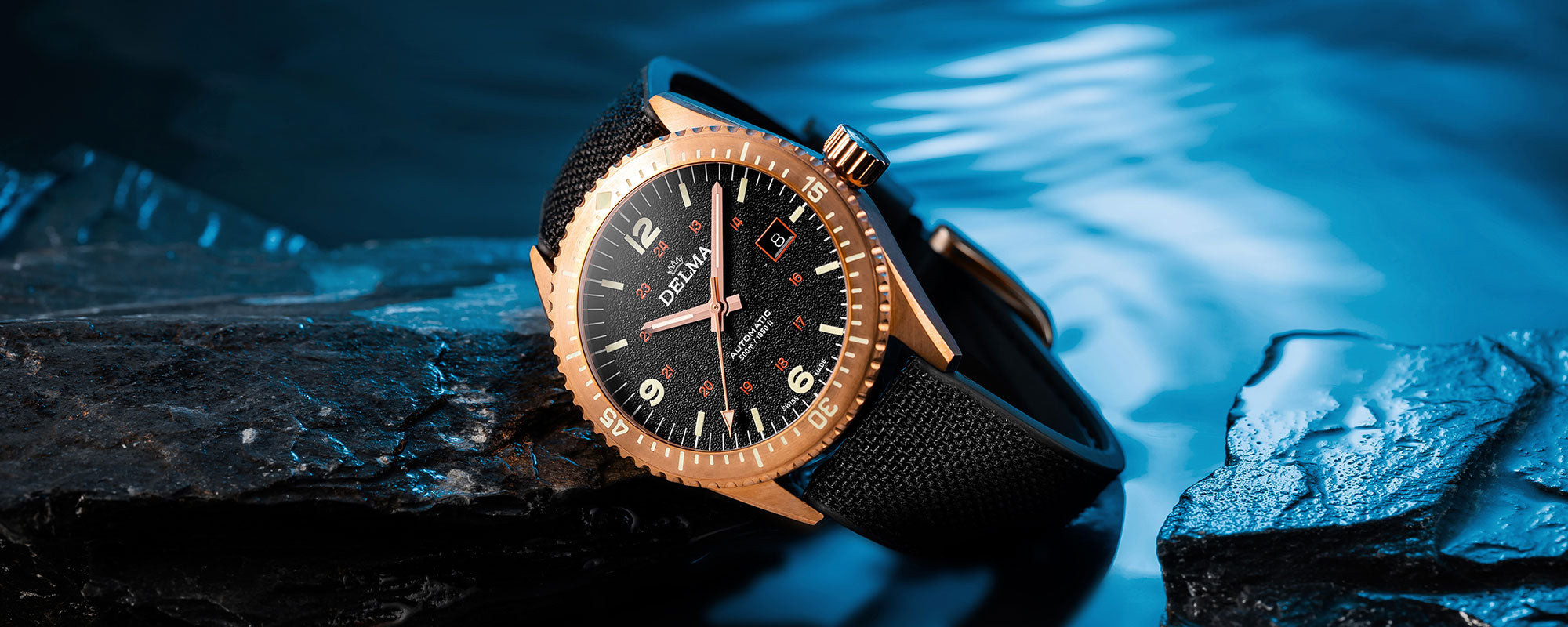 The Cayman Bronze was conceived with visions of nautical landscapes as an extension of a model rooted in our history. The Cayman collection, launched in 2019 pays homage to the sea with inspiration from DELMA’s skin divers’ watches of the 1970s.