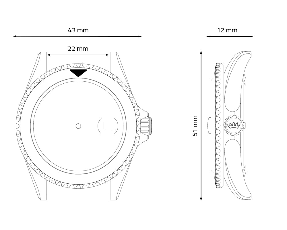 Lug-to-lug size 51 mm