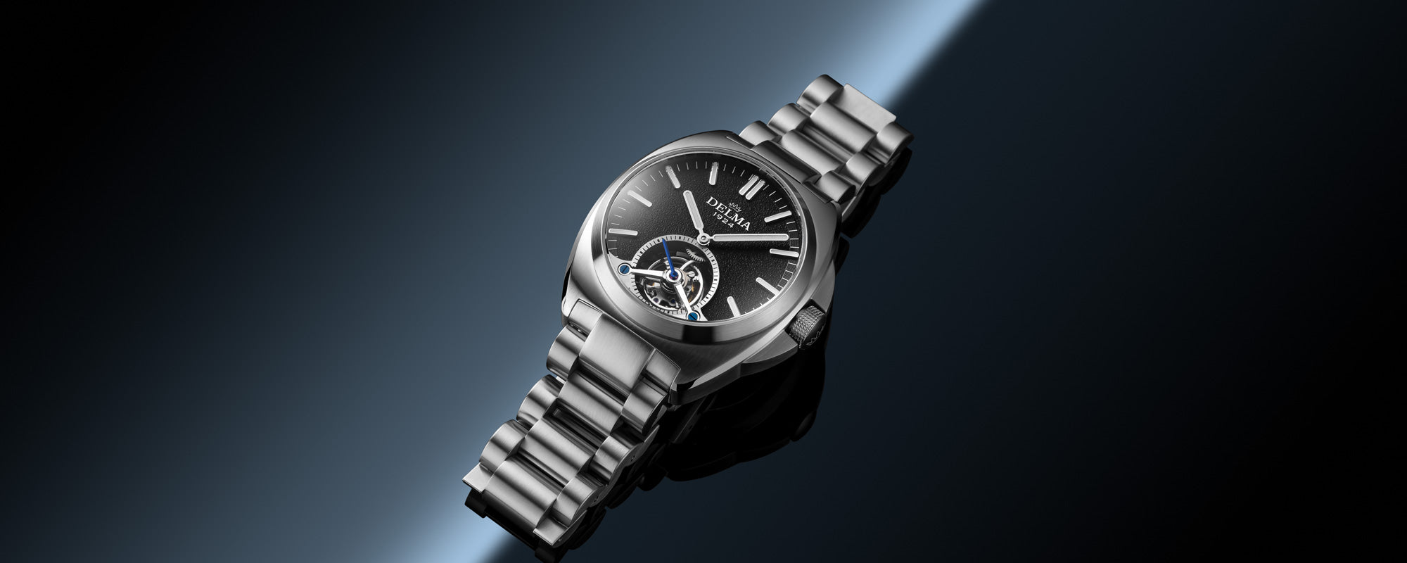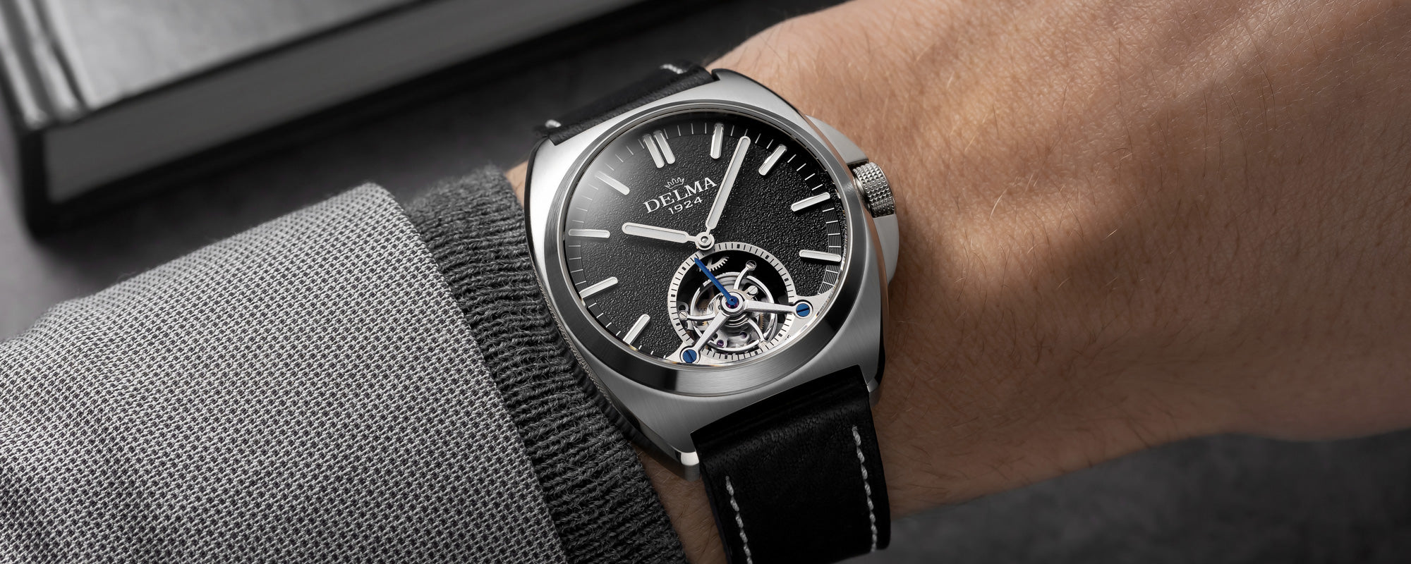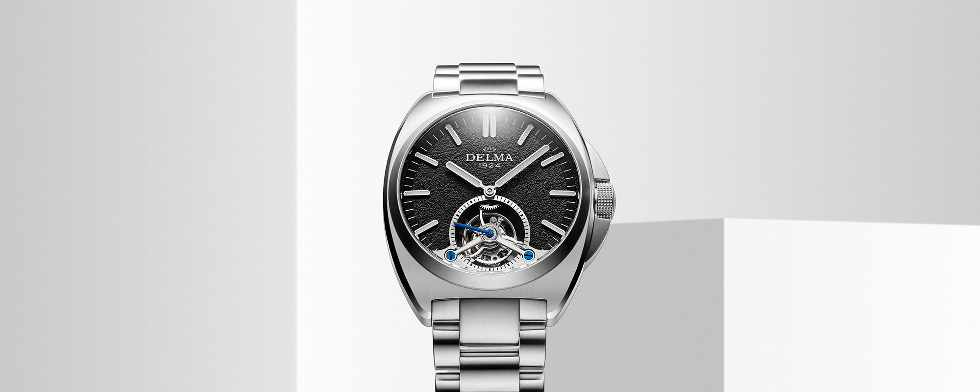The DELMA 1924 Tourbillon signifies longevity, craftsmanship and progress in honor of our 100th anniversary. The tourbillon sits at the heart of DELMA’s proprietary 100% Swiss Caliber DT100.01, a hand-wound movement with a prodigious power reserve of 105 hours.