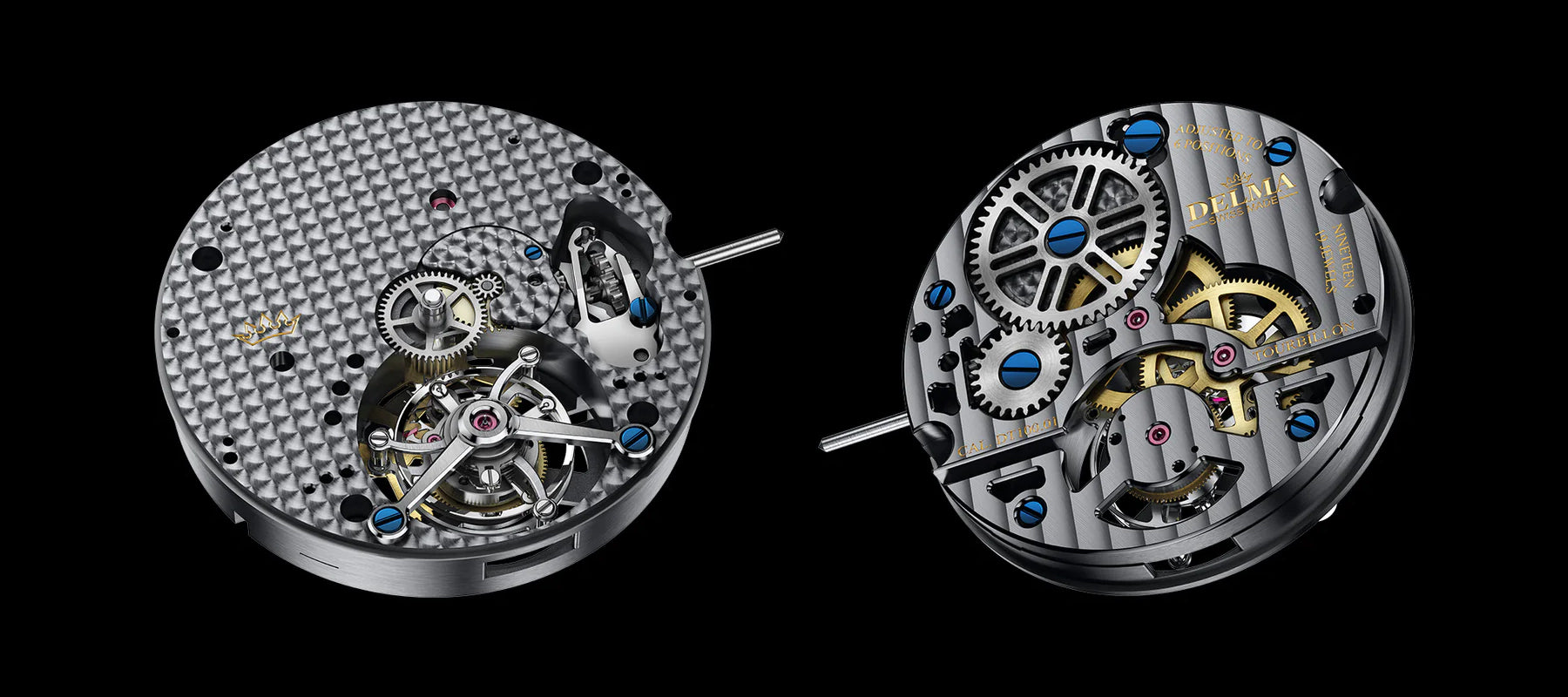 DELMA designed the movement drawing on the development and engineering expertise of Olivier Mory of BCP Tourbillons. Several other specialist firms from the region such as Atokalpa assisted in procuring the components for its 100% Swiss Made movement.