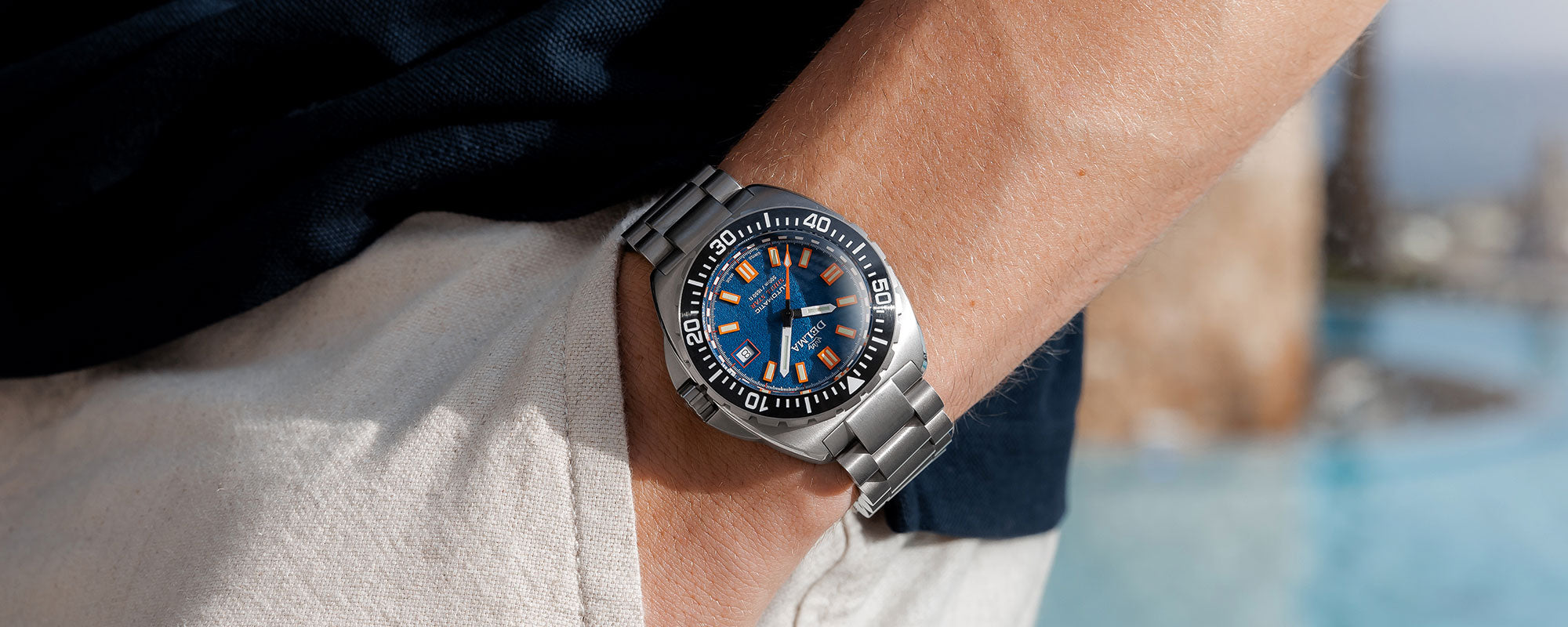 The Shell Star Titanium is sleeker and lighter than ever. Weighing in at only 136 grams, this exciting evolution of DELMA’s signature Shell Star collection is lightweight and robust. With compact proportions for a divers’ watch at 41mm in diameter and just 13.6mm thick, it is exceptionally comfortable and enjoyable to wear in and out of the water.