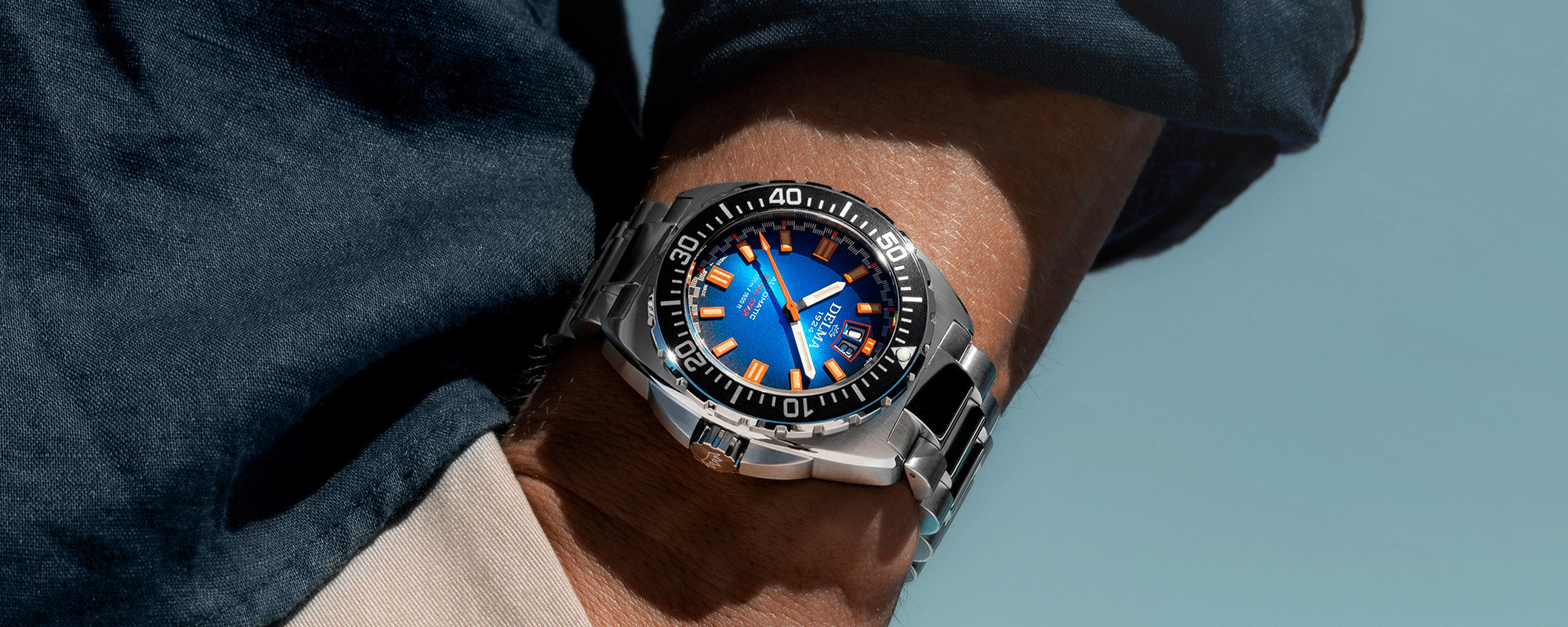 The latest Shell Star Big Date stays true to its heritage while integrating modern advancements. Built for the toughest conditions, its brushed stainless steel case features a screw-down crown for enhanced durability, a helium escape valve, and an impressive water resistance of 500 m / 1650 ft. The bold, applied luminous orange indexes and a black unidirectional bezel ensure optimal readability in any environment. A striking gradient blue dial is complemented by an orange-framed big date display at 12 o’clock, balancing functionality with a distinctive aesthetic.